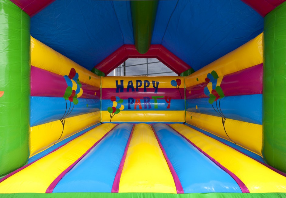 Wie der Aufdruck bereits verrät, macht diese Hüpfburg jede Party zu einem unvergesslichen Fest. Der Große Clown und die Luftballons auf dem Dach, sorgen für beste Partystimmung. Als perfekte Ergänzung wurde die Hüpfburg in den Farben Pink, Grün, Gelb und Blau gestaltet. An den Seitenwänden der Hüpfburg sind lustige Clown Motive und Luftballons angebracht. Diese Hüpfburg darf auf keinem Fest fehlen.
